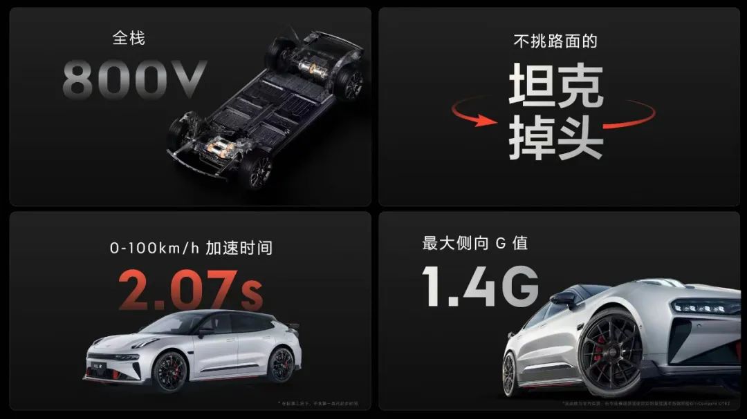 拥有1265匹马力的极氪001 FR,在现场实测了2.36秒的零百加速;展示了坦克掉头以及不打方向绕桩;安聪慧还用卫星电话接通了处在无人区的001 FR测试车……