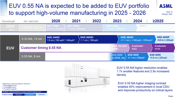 EXE:5000有点像是实验平台,供芯片制造厂学习如何使用高NA EUV技术,而预计2025年发货的下一代EXE:5200,才能支持大规模量产。