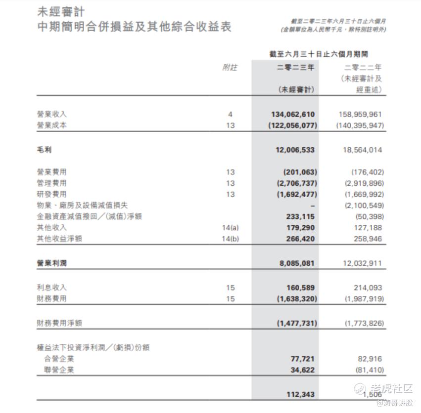 据公司财报,2023上半年,公司营收为1340.6亿元,同比下降15.66%,归母净利为34.17亿元,同比下降23.3%;扣非归母净利为28.84亿元,同比下降24.8%。