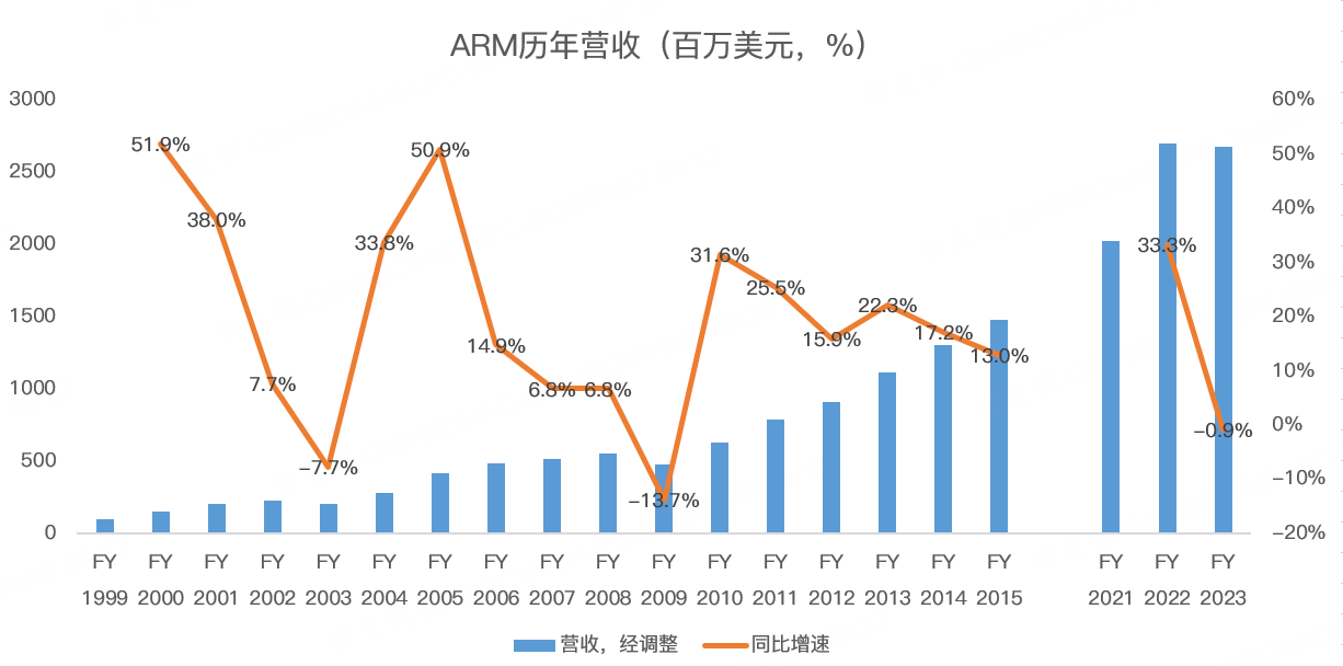 虽然波澜壮阔的移动浪潮趋于平静,但根据Arm路演消息,管理层认为2024财年的营收增速约11%,2025财年为20%,2026财年约15%。