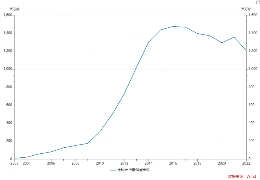 如根据数据统计,自2015年之后,全球智能手机出货量就开始走下坡路: