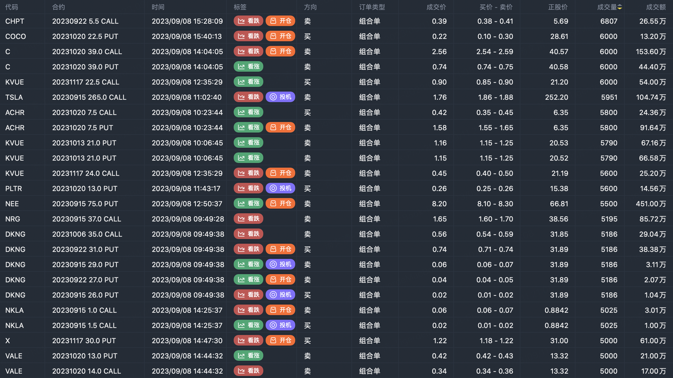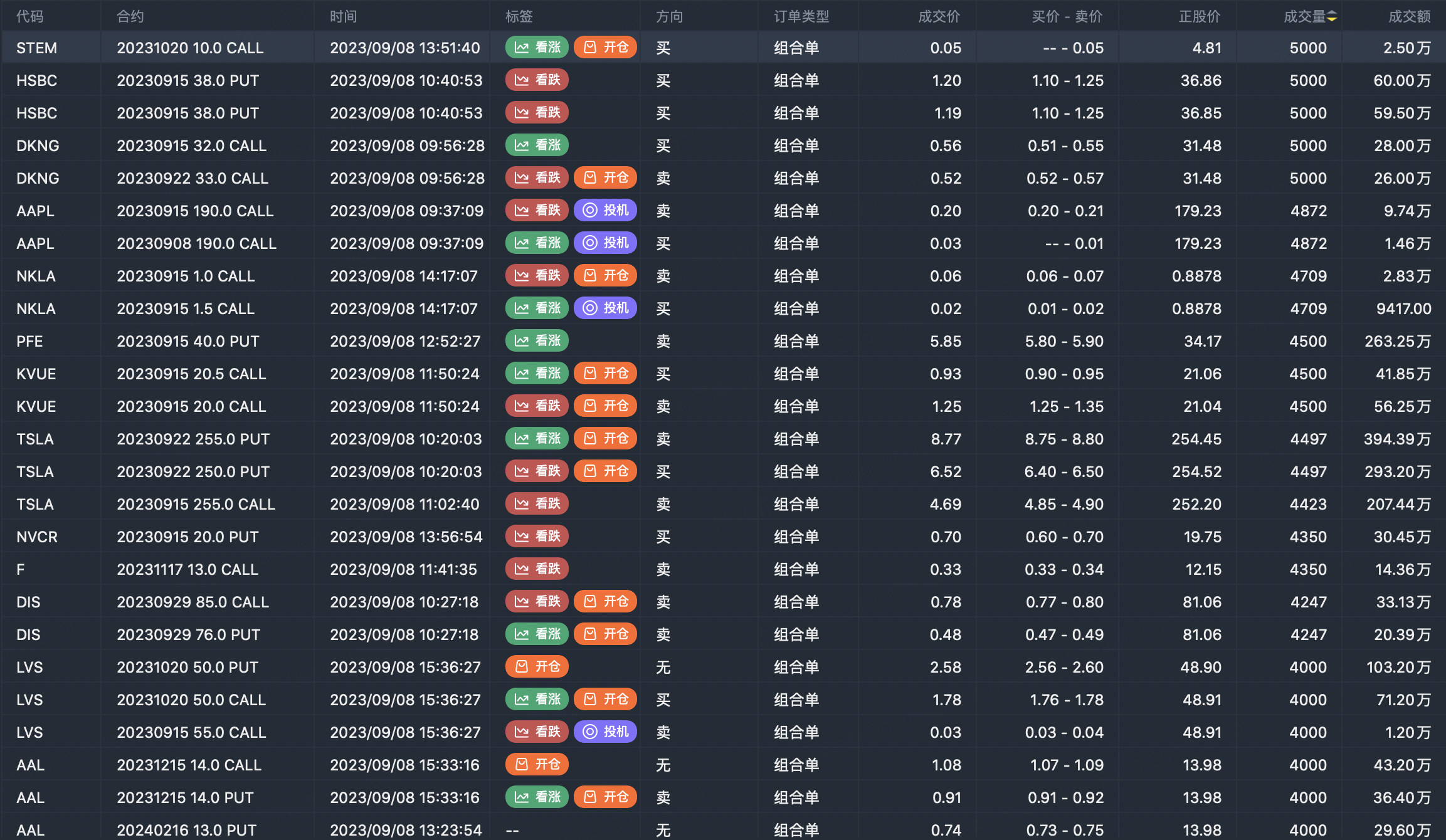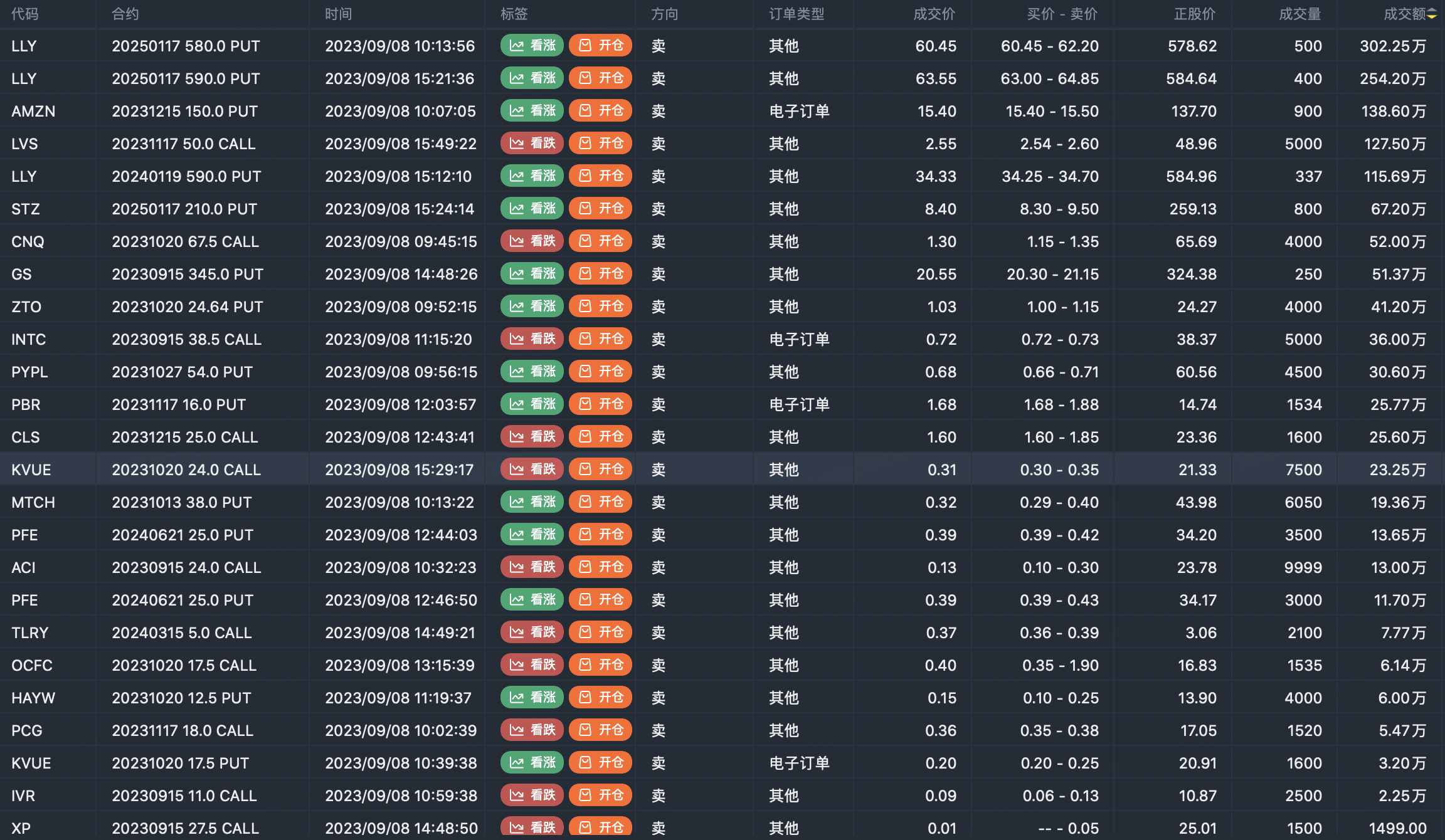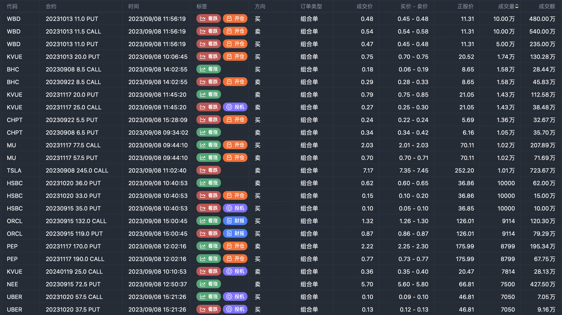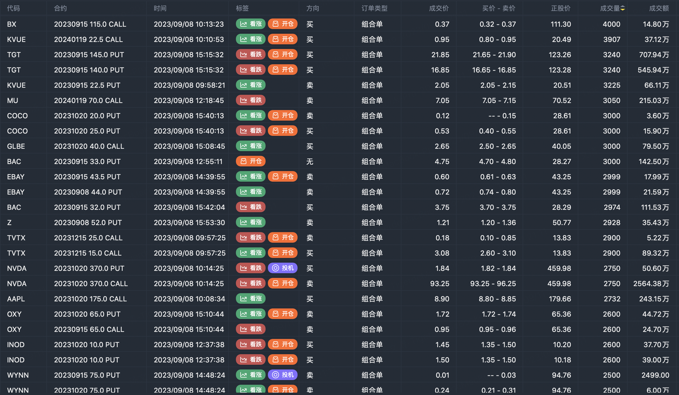 注:此图片数据来自老虎国际PC端。此筛选为市场上期权合约的重大卖出开仓合约。看涨期权卖出代表交易者认为标的趋势见顶,看跌期权卖入代表交易者认为标的趋势见底。这些合约开仓通常表明标的股票的显著活动,包括交易员是否愿意积累多头或空头期权头寸。