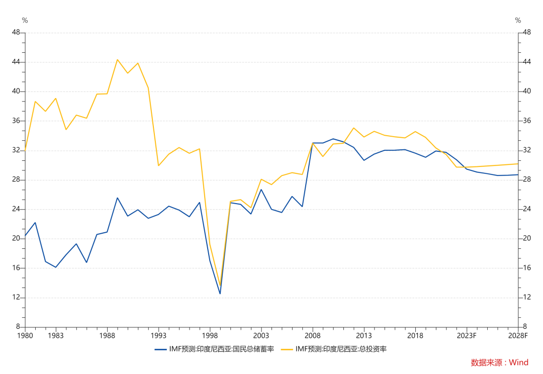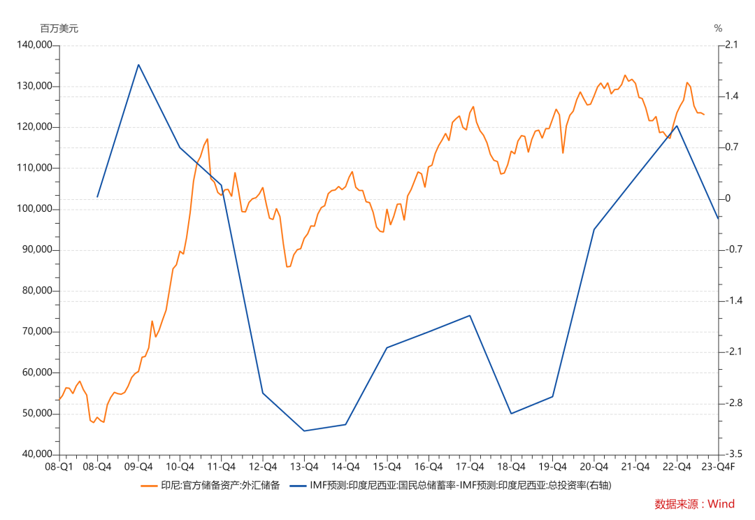 印尼曾经投资率远高于储蓄率,所以他们需要借外债,由此带来了亚洲金融危机时刻的外汇危机。而现在基本上持平,如果未来外国投资进入当地,或者当地出口增加,那么可能他们也和中国1994年一样,要开始积累外汇储备了。