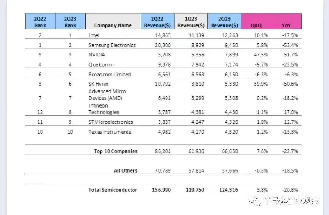 根据最新的 Omdia 竞争格局跟踪报告,在连续五个季度收入下降之后,半导体行业在 2023 年第二季度扭转了颓势并实现了收入增长。