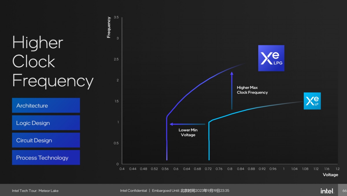 提频依赖于架构、逻辑与电路设计,以及工艺进化(虽然不知道Graphics tile是否基于Intel自己的Intel 4)。