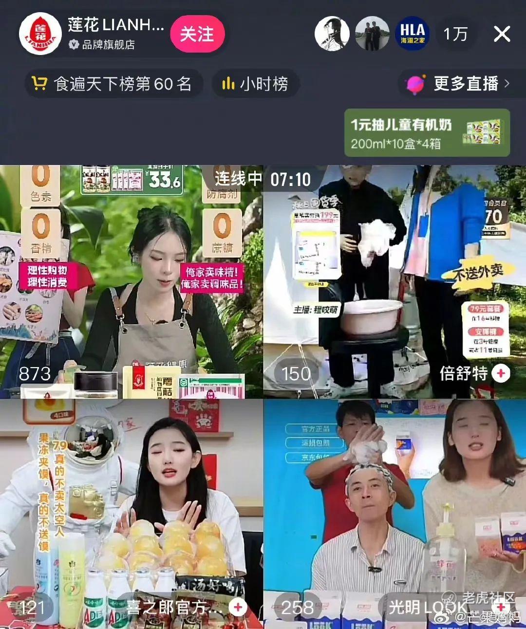 其他直播间,如蜂花、倍速特、光明LOOK、喜之郎、白象方便面等国货品牌也都参与到国货狂欢之中,他们将友商甚至竞品的商品摆上自家直播间的台前,连麦互相为对方带货,将这一波国货的情绪推向了顶峰。