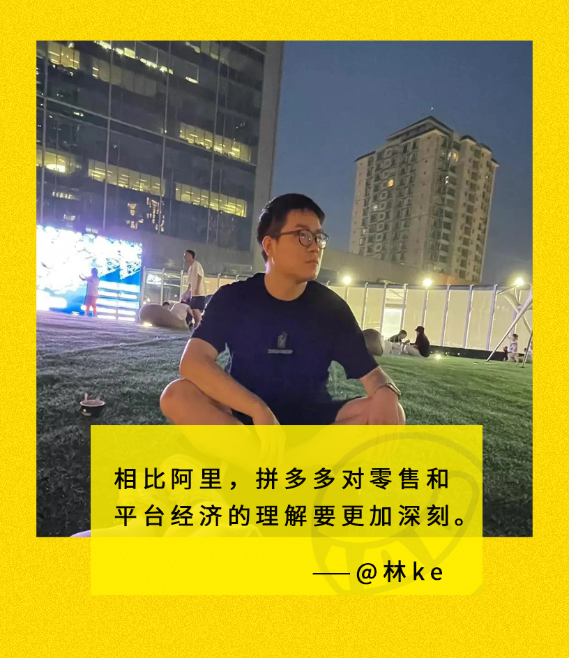 另外都是当年从事社区团购的时候,多多买菜也是我们非常核心的竞争对手。在这个产品交锋的过程中,我发现多多的产品力和执行力都很强,远远在我们之上,也在美团优选之上。特别是在处理一些两难场景中,它们总是可以给出来让人佩服的解决方案。这让我也感受到了他们的组织力。