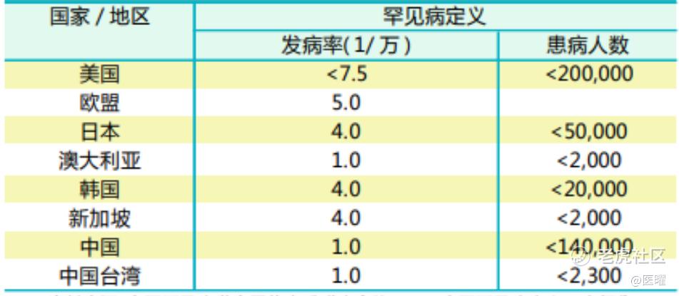 图:世界各国罕见病定义比较,来源:2021中国罕见病定义研究报告