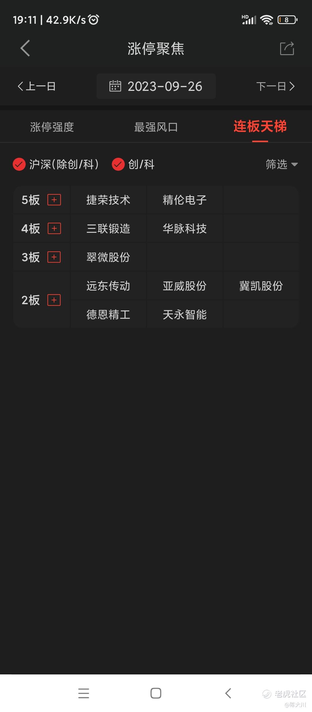 3. 每天复盘梳理下近期的热点板块,当日启动的强势板块,市场的高标梯队以及市场的赚钱风格。