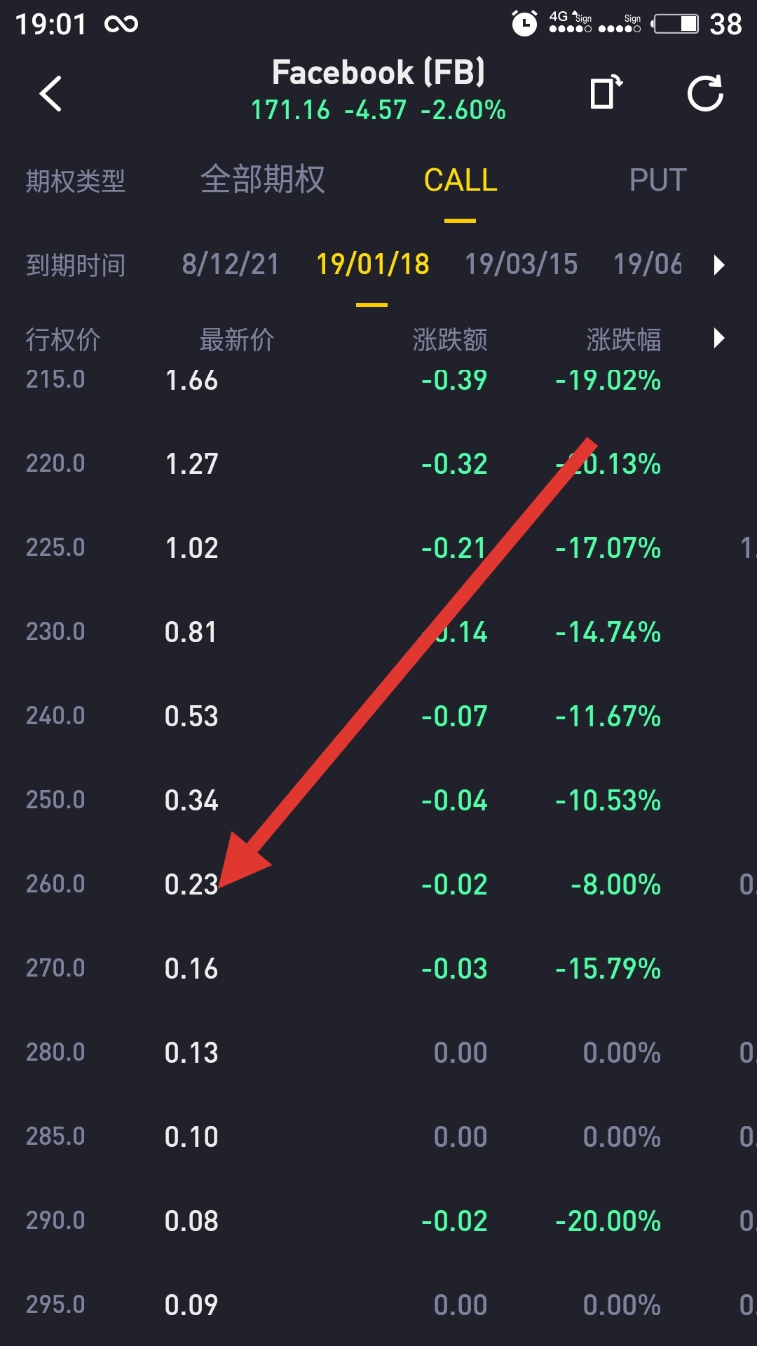 260的call,明明是0.23