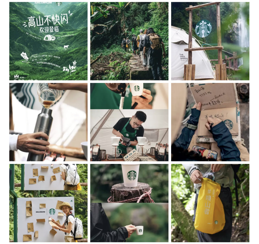 这个十一假期,星巴克与SALOMON在云南高黎贡山百花岭大瀑布打造了瀑布下的联合快闪店。此次快闪营地由星巴克伙伴轮流驻守,用一杯咖啡与消费者共同分享这山林的味道。用户到现场参与活动即有机会领取限量版唤山环保袋、种子纸、登山扣等周边好物。