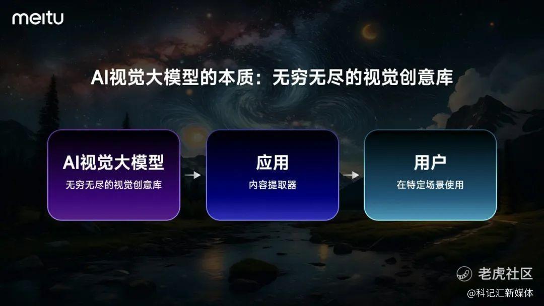 活动现场,吴欣鸿还分享了对于AI视觉大模型的思考。“AI视觉大模型的本质,是无穷无尽的视觉创意库。应用层相当于内容提取器,根据用户的需求,从这个巨大的创意库中提取所需要的内容,让用户在特定场景中使用。AI视觉大模型和应用之间相辅相成,大模型为应用提供技术支撑,应用反哺大模型的效果迭代。”
