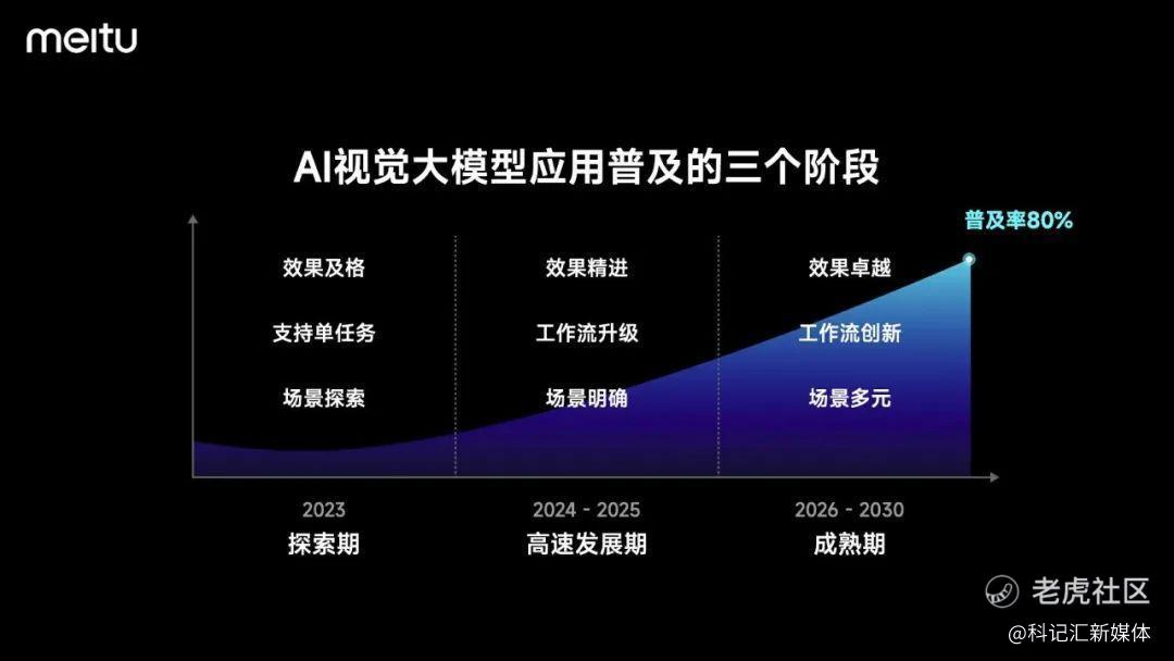在吴欣鸿看来,视觉大模型应用普及将经历三个阶段:2024年之前为探索期,2024-2025年为高速发展期,2026-2030年为成熟期,随着视觉大模型在生产端的应用走向成熟,视觉大模型将助力千万设计场景,引领美学的升级与社会经济增长。