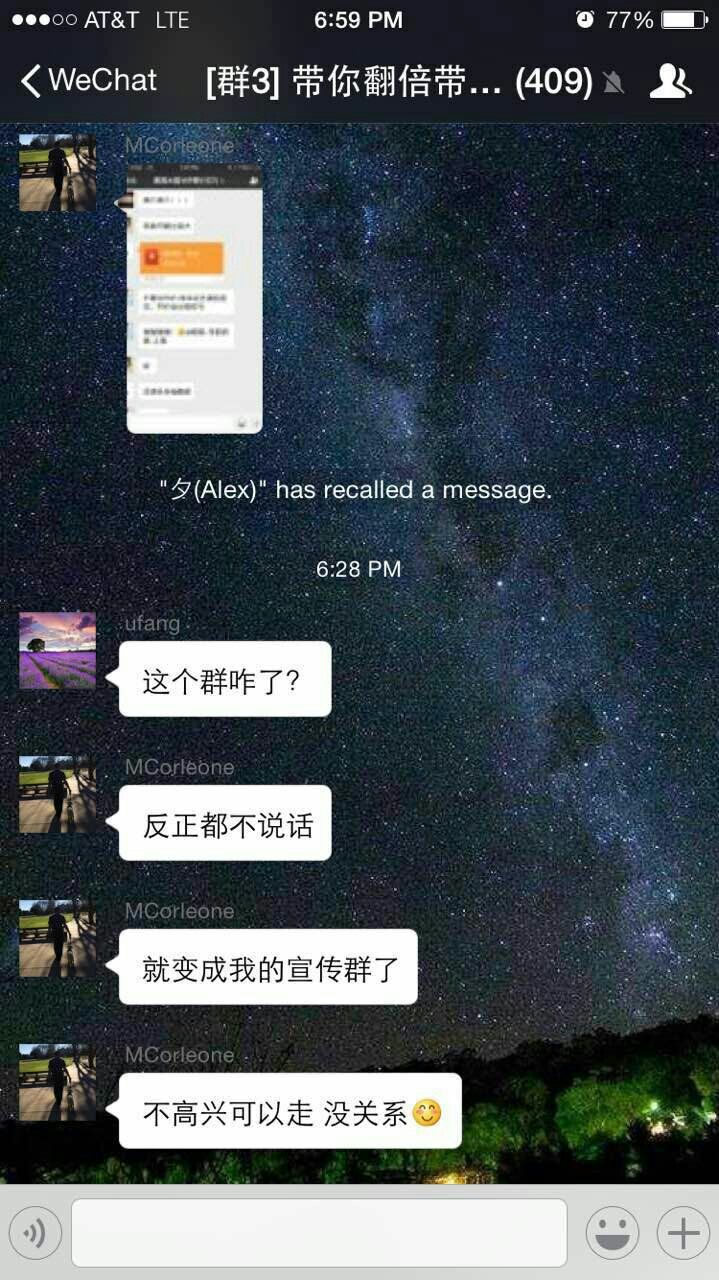 我没有,我之前在他那提示风险和机会被他找人群里骂我,我就退了。后来那群里很多群友加我吐槽他们。经验丰富的几乎都退了他的群。