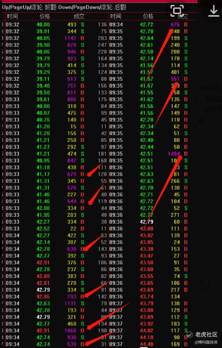 大家通过分时图可以看到,9.33到9.35分之间,部分主力先后在41.3和41.5,以及42.5和42.7之间先后出手,也就是说,开盘高价卖了,这个位置买回来,才能相对安全,当然这个价格主力介入不想亏钱的话,还得掏点真金白银出来,否则,如果今天底部介入的,今天不能反包,42附近还是会有机会走的,因为龙头不死,必有二波,我说的是一般情况哈