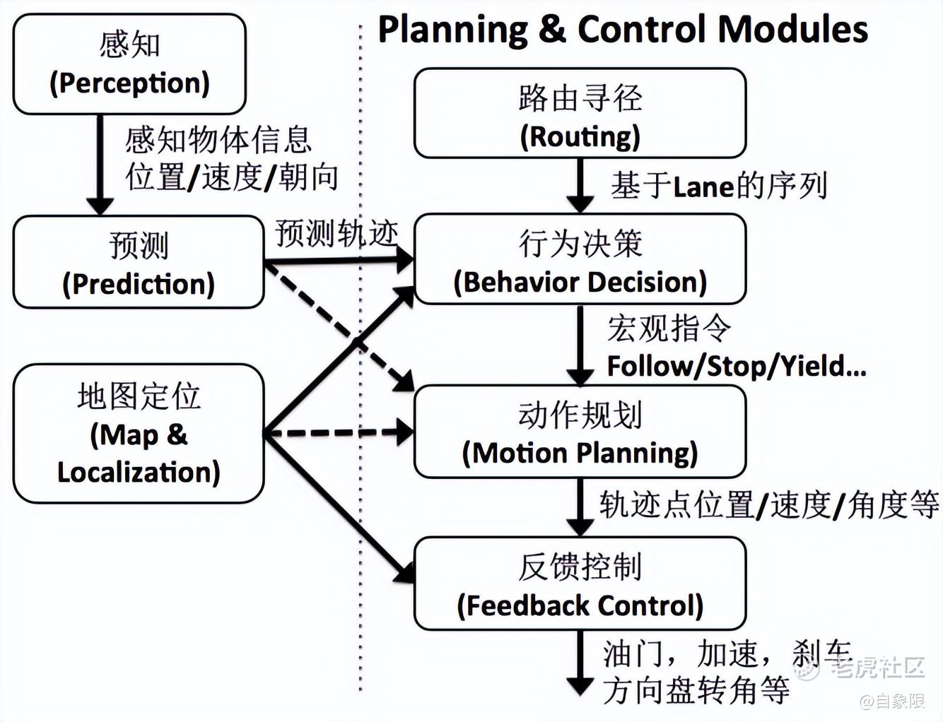 从这可以看到,自动驾驶的决策已经从之前,依靠单一信息进行分布决策,变成了多种信息汇总之后的统一决策。