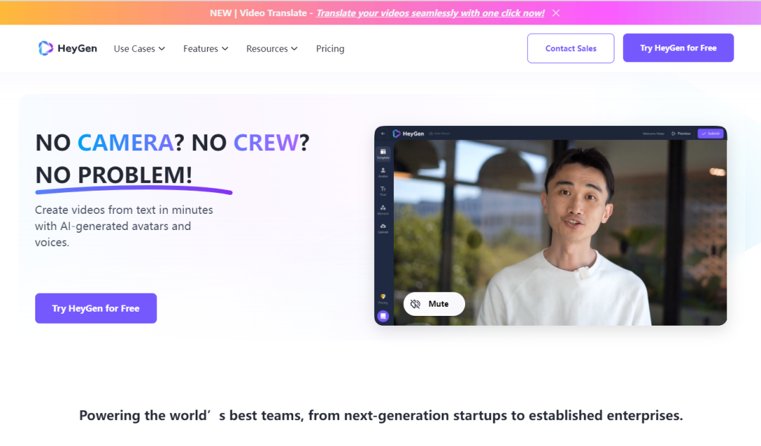 想来这也是为什么目前HeyGen主要面向B端的原因——点开HeyGen页面,标语写着“为新一代从初创企业到成熟企业的全球最优秀团队提供助力”。相较于传统视频制作,HeyGen无需设备,无需演员,无需三方团队,只要短短几分钟就可以生成摄制组要花许多天制作的视频,确实能在很大程度上减少大量有视频需求的企业的成本。