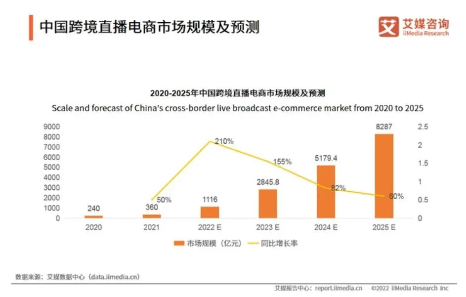 艾媒咨询数据显示,预计到2025年,中国直播电商行业规模将达到21373亿元,品牌自播成交额预计在今年会达至整体直播电商成交占比中的50.0%。
