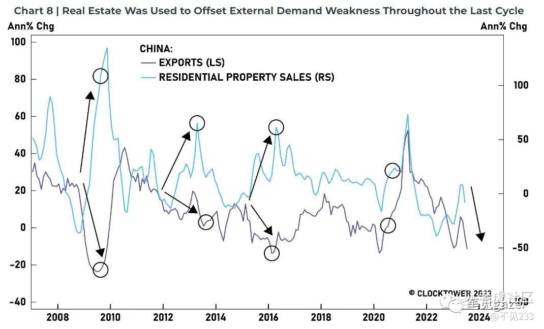 2海外信用扩张时,龙用“内循环”+逆周期调节的信用扩张解决问题,即消费+房地产(上图蓝线),对内维持本币资产池(比如房价是资产、杠杆是债务),当然这里资产池还有高下之分,比如消费市场活水最足,充分竞争,是最优质的行业,而房地产是上杠杆最好,信仰最足的行业等等。