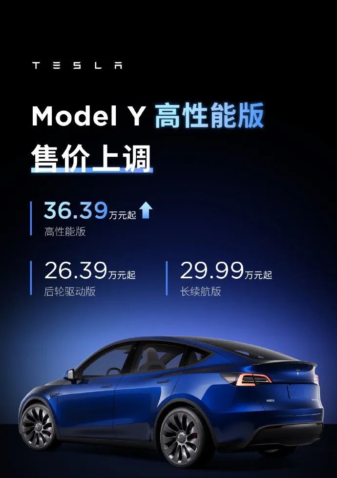 今日上午,特斯拉宣布 Model Y 高性能版售价上调 1.4 万元,现价 36.39 万元,后驱版和长续航版的售价不变。