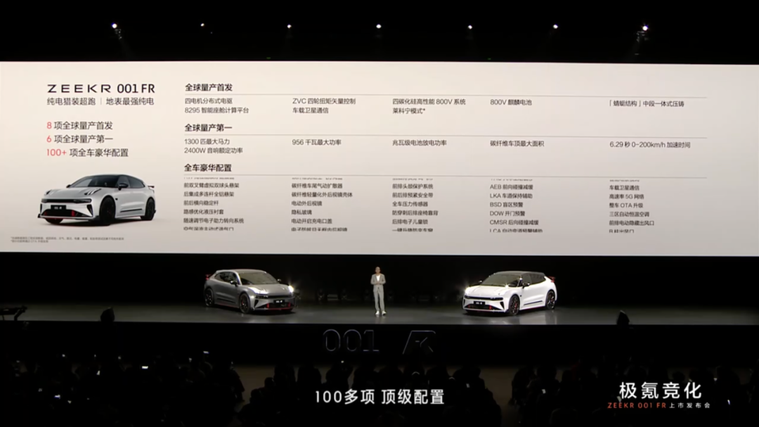 与 9 月 1 日首次亮相相比,极氪 001 FR 在性能上再刷新了数据,马力从 1265 匹增加至 1300 匹,零百加速从 2.07s 刷新至 2.02s。