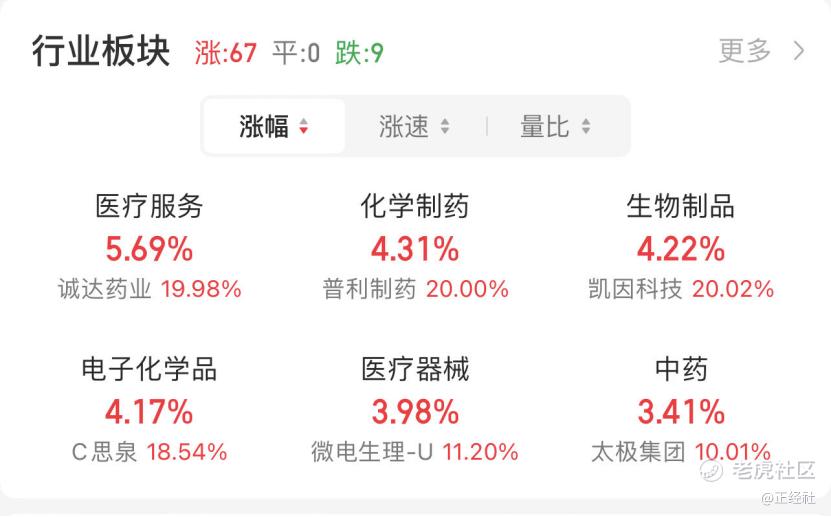 跟大盘共振的方向,都会被资金高看一步,普遍认为当大盘反弹时,与大盘共振的方向往往是新一轮行情的“火车头”。本次共振的方向主要有:医药,电力新能源,消费。