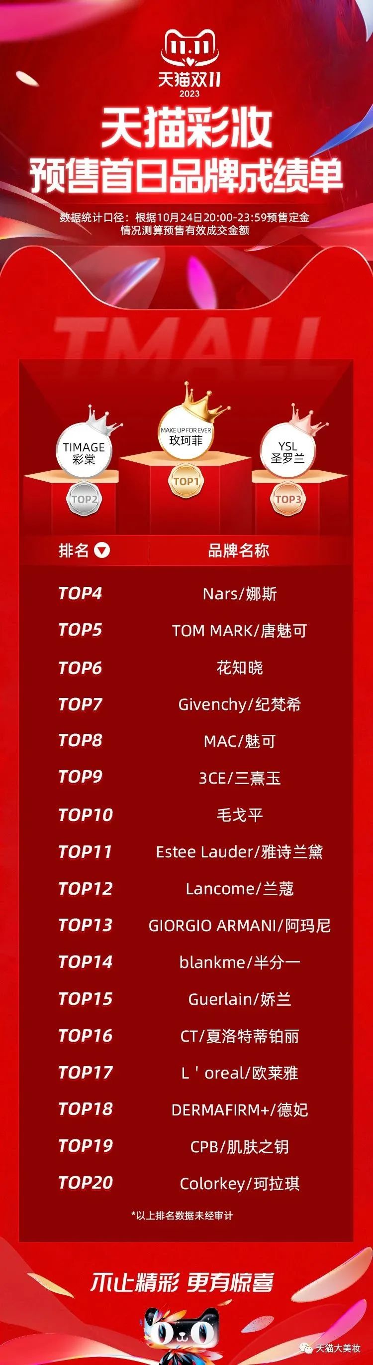 近日,天猫发布了双11预售首日榜单。美妆类目强势开局,开售10分钟左右就有12个美妆品牌销售破亿,势头不容小觑。