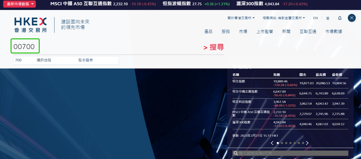 (1)输入港交所网址:https://www.hkex.com.hk/, 点击网页中的搜索框,输入上市公司全称或者港股代码。