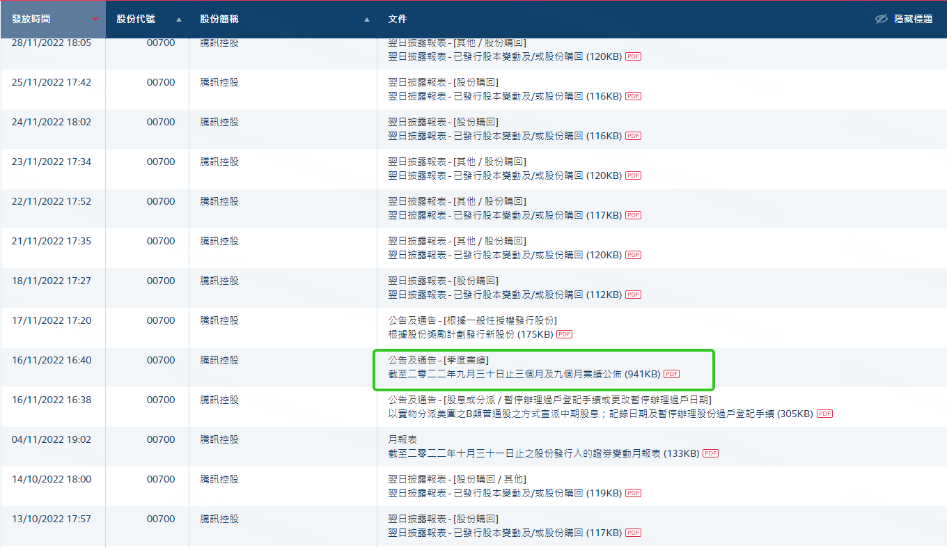 在港交所查询港股财报一共分为 3 步:以腾讯控股(00700.HK) 为例。