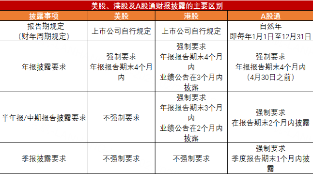 芝士虎整理了美股、港股和A股财报披露的主要区别如下: