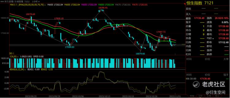 恒指的一小时仍然是一个W底的中端位置,17000点的中间位置应该是稳住了,技术上任然是往事看突破的概率更大。