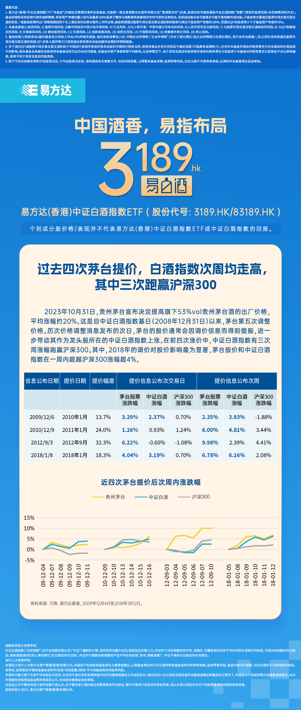 过去四次茅台提价,白酒指数次周均走高,其中三次跑赢沪深300,请关注3189.HK