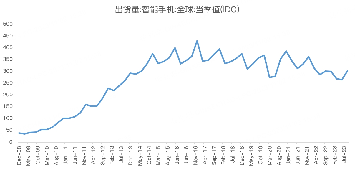 根据IDC的数据,今年三季度,全球智能手机出货量3.028亿部,同比下滑0.1%,下滑幅度较此前2个季度明显收窄,拐点初现:
