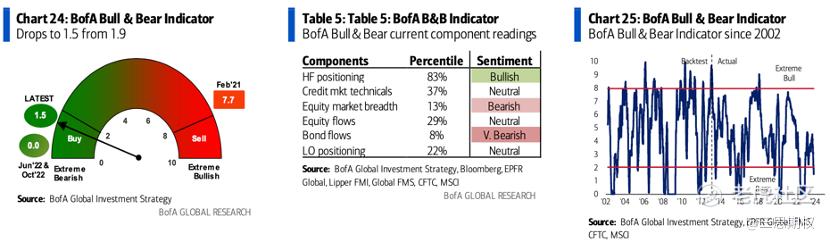 首先是美银牛熊指数,在十月最后一周从1.9下降到了1.5,这是自2022年11月以来最低的读数。