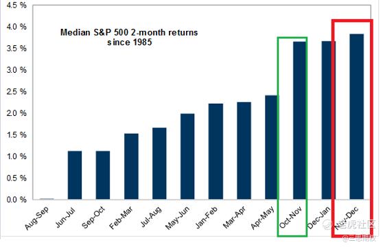就即将到来的11月,单从季节性统计而言,自1985年以来,标普500指数在11月的中位回报为+3.86%。标普指数在过去的11年的11个11月份里,有10个都是上涨的。自1928年以来,标普指数 $标普500(.SPX)$ 在11月的中位回报为+1.50%。