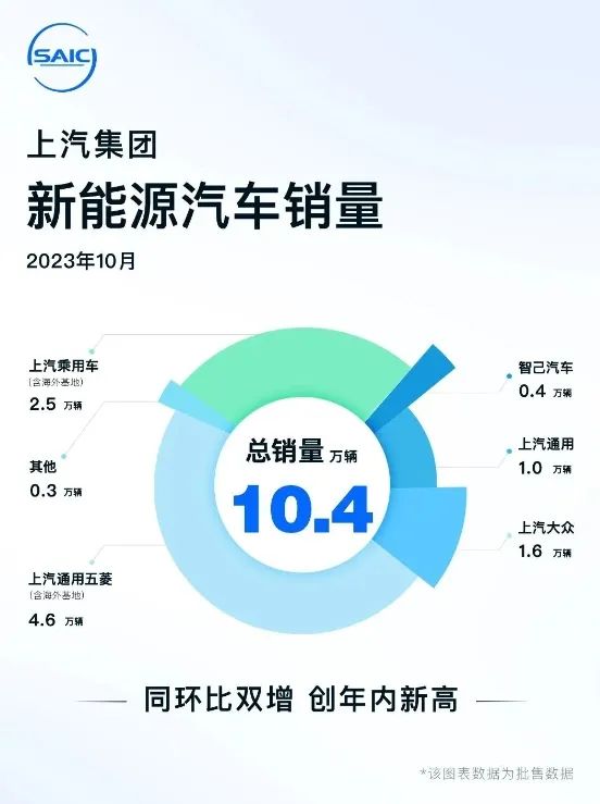 上汽集团 10 月新能源销量 10.4 万辆