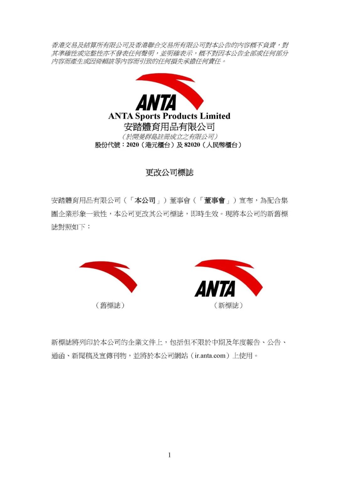 近日,安踏体育在港交所发布公告,为配合集团企业形象一致性,公司更新了其公司的标识使用规范,即时生效。