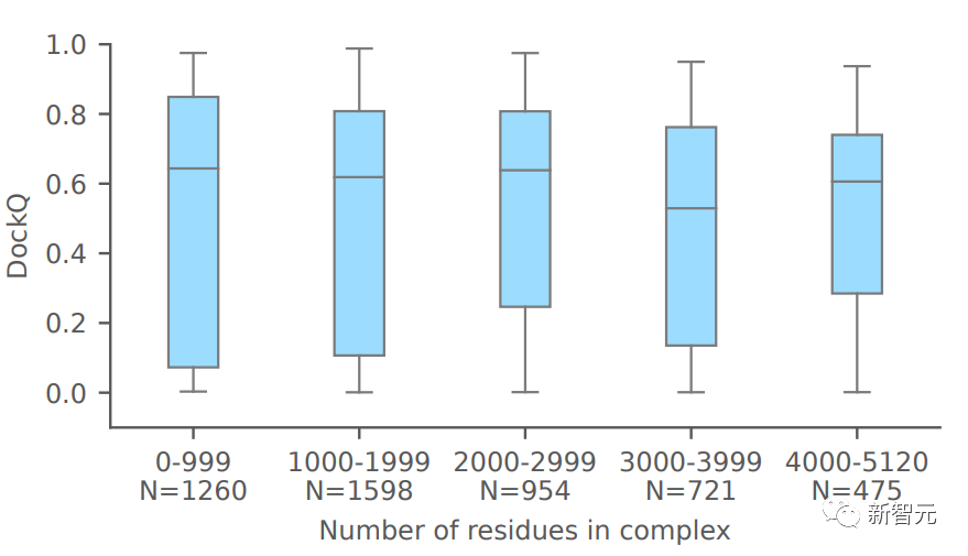上图表明,对于大型复合物,AlphaFold-latest单体蛋白的预测准确度仍然很高。
