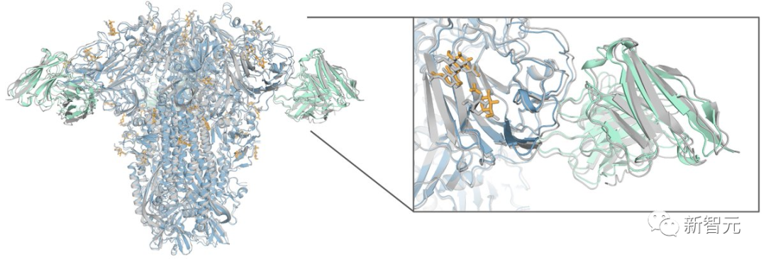 而且对于许多涉及残基修饰的的生物过程(例如蛋白质中的糖基化), “AlphaFold-latest”可以预测生物分子中所表现的一系列特征的结构——例如共价结合的配体、糖基化和修饰残基。