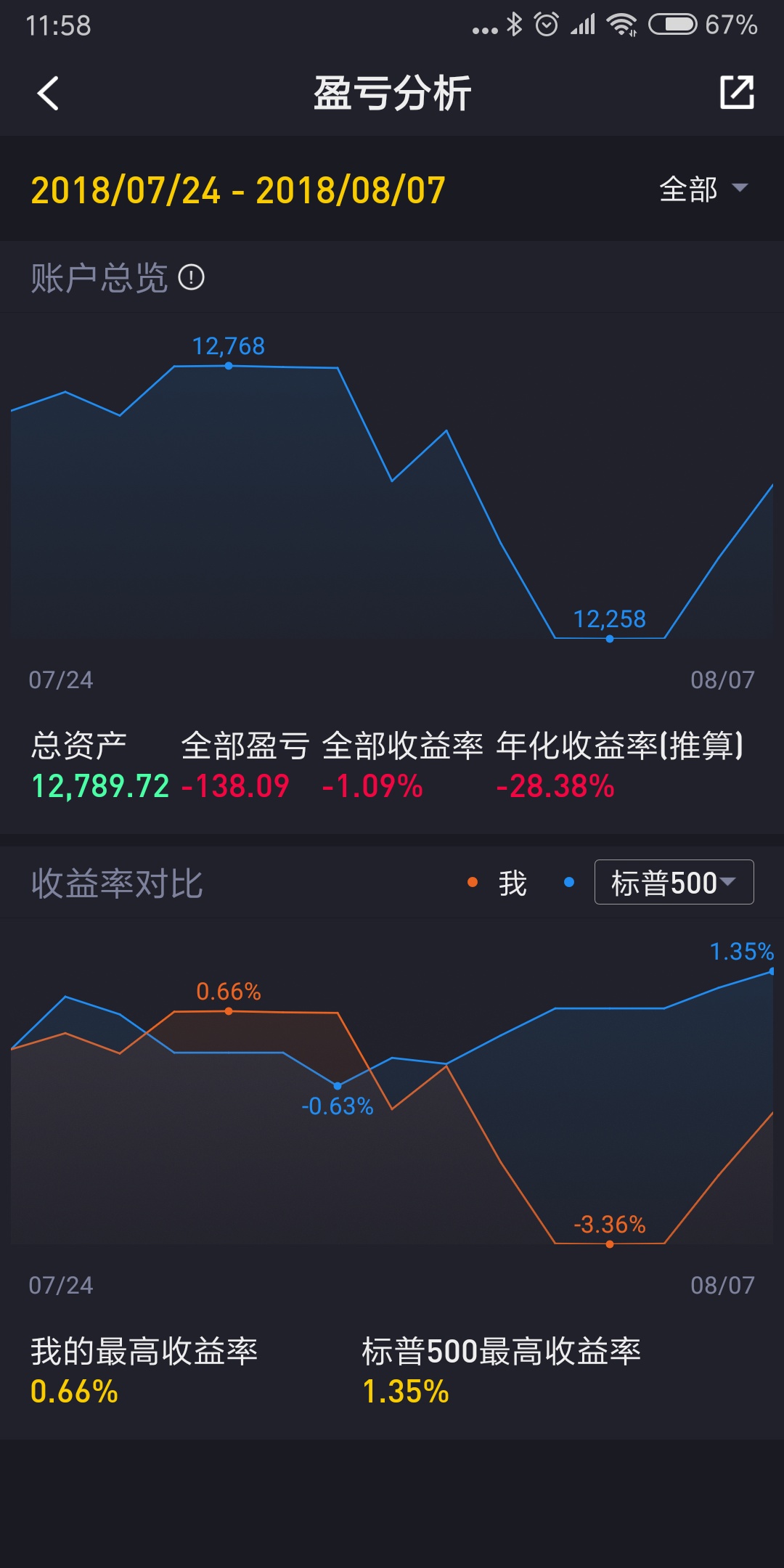 注意看时间,盈亏是截止到8月7日,今天的盈利要过两天才能看到