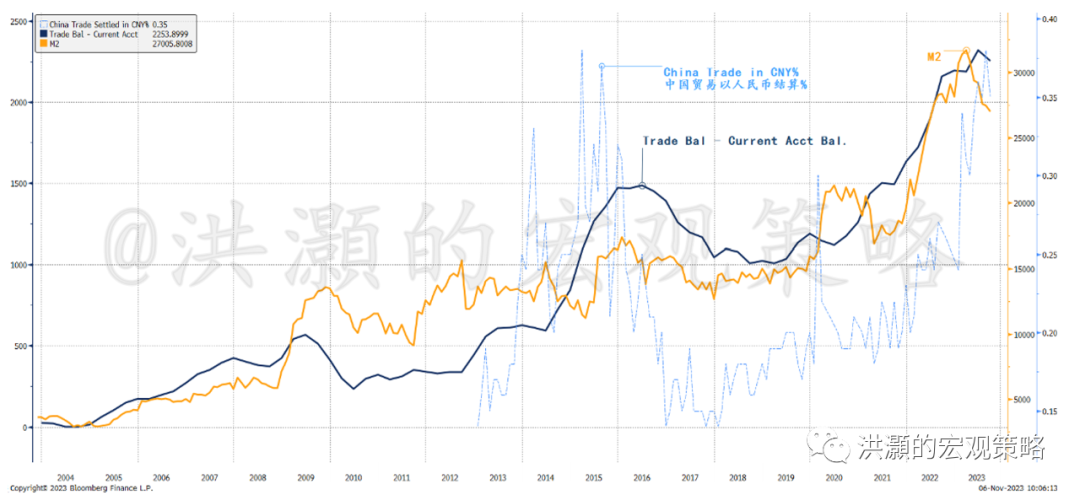 图表7:中国破纪录的贸易流动增加了货币供应量。资料来源:彭博,思睿研究