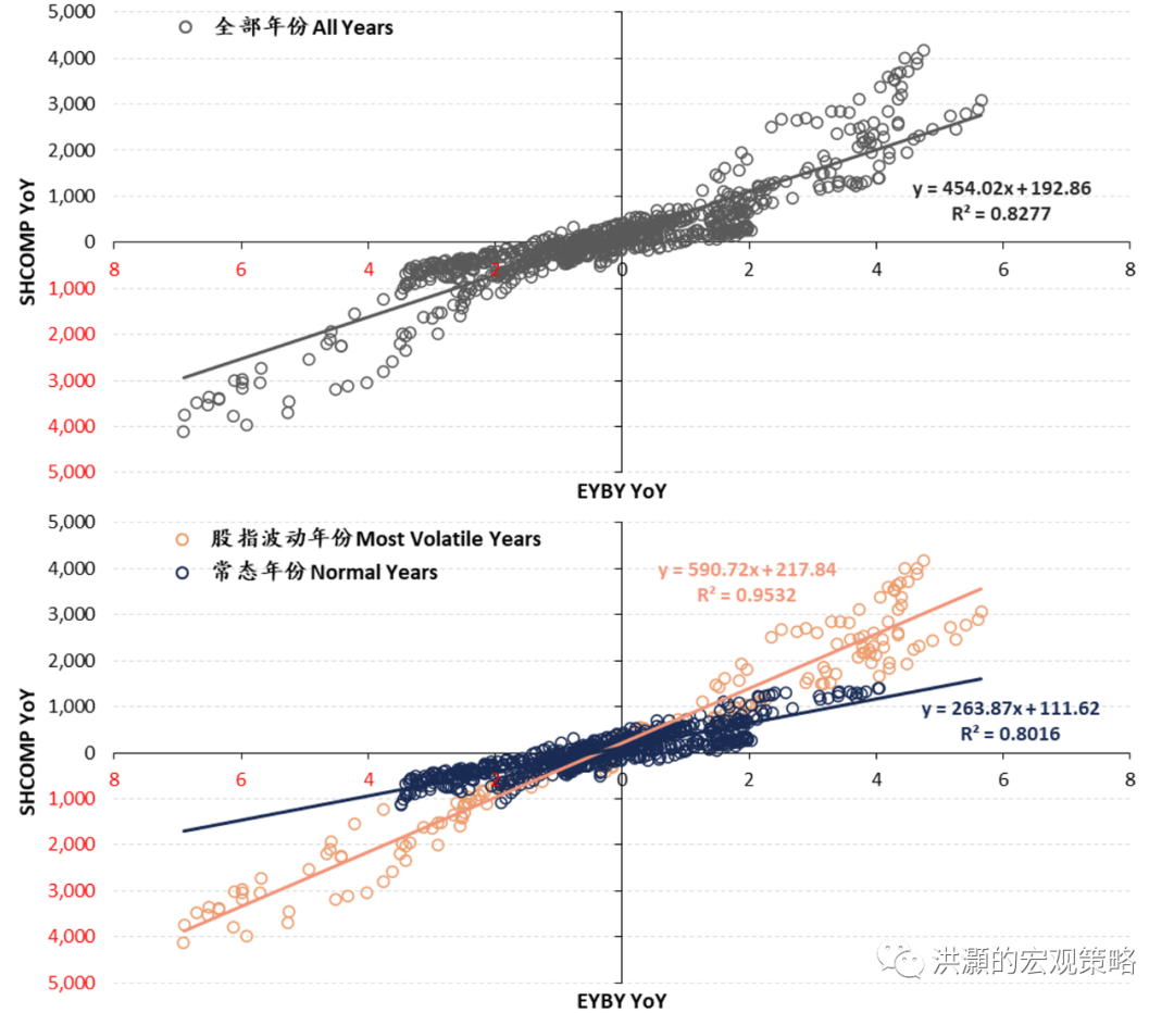 我们的EYBY模型与标的指数密切相关,尤其在对2007年和2015年股指异动的泡沫年份进行调整后(图表15)。我们于2021年11月发布的预测交易区间是当时看涨共识中唯一冷静自持的预警呼声,而故事的结局早已昭然于世人。我们于去年十月底以一记《Mai!Mai!Mai!》再度铿锵有力地空翻多,这是彼时暮霭沉沉、寒蝉凄切的市场中唯一的看涨呼声。