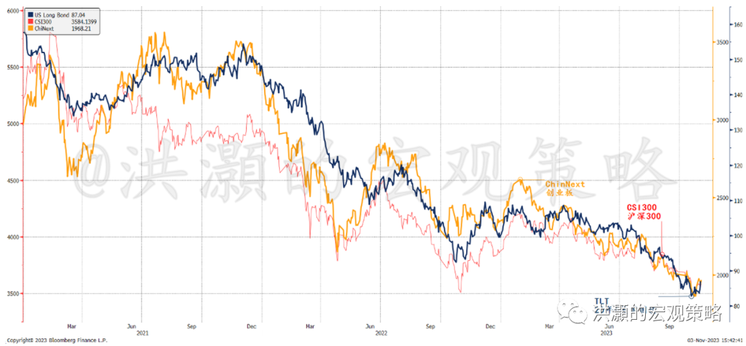 图表10:中国股市与美国长债收益率高度相关。资料来源:彭博,思睿研究