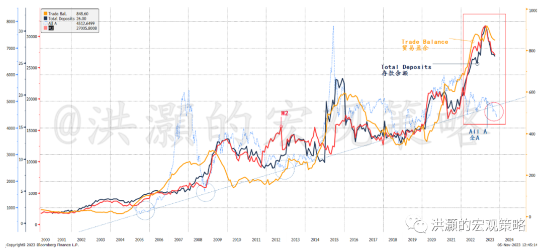 但储蓄是指消费后剩下来的余钱。然后,这些余钱会被配置到房产、股票、债券或存款。八方风雨会中州之际,人们会倾向于减少消费,因此储蓄增加,但省下来的钱如何在不同资产类别之间进行分配并不会改变余钱数量的总额,因为任何交易都牵涉买卖双方——甲的钱变成了乙的存款,而乙的财产则归属于甲的名下。因此,“超额储蓄”理论并不能完全解释存款余额的高歌猛进和股市的低迷不振。