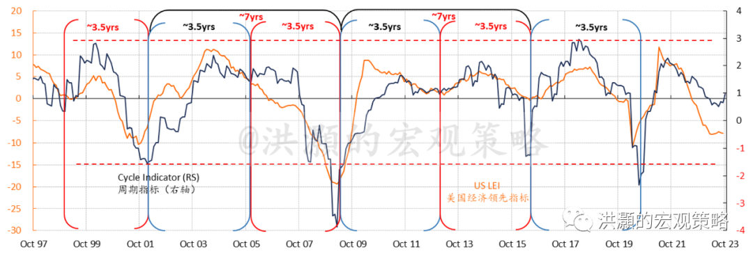 但若美国经济于2024年陷入衰退呢?尽管市场已经开始计入明年美联储四轮降息的预期,但这一预期也预示着美国经济将骤然放缓,由此迫使美联储开启降息之举。顺道一提,我们的美国经济周期指标显示美国经济正在减速慢行,并与美国经济领先指标的走势交相呼应。