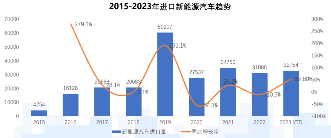 2023年1-9月份新能源汽车销售32754辆,同比上涨52.80%。其中纯电动汽车仍保持快速增长态势,累计同比增长达到315.28%,宝马i系,特斯拉Model X和雷克萨斯RZ增量贡献居前。插电混合车型,受国产插混车型市场影响,本月进口插混车型销量表现偏弱,同比下降21.25%。