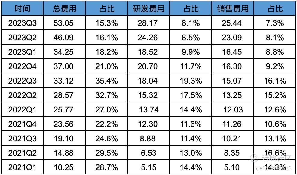 总费用53.05亿,总费用率15.3%,随着收入规模的扩大,费用率持续降低。研发费用28.17亿,费用率8.1%;销售费用25.44亿,费用率7.3%;两费的绝对值持续提升,但由于收入的增长更快,导致费用率持续降低。