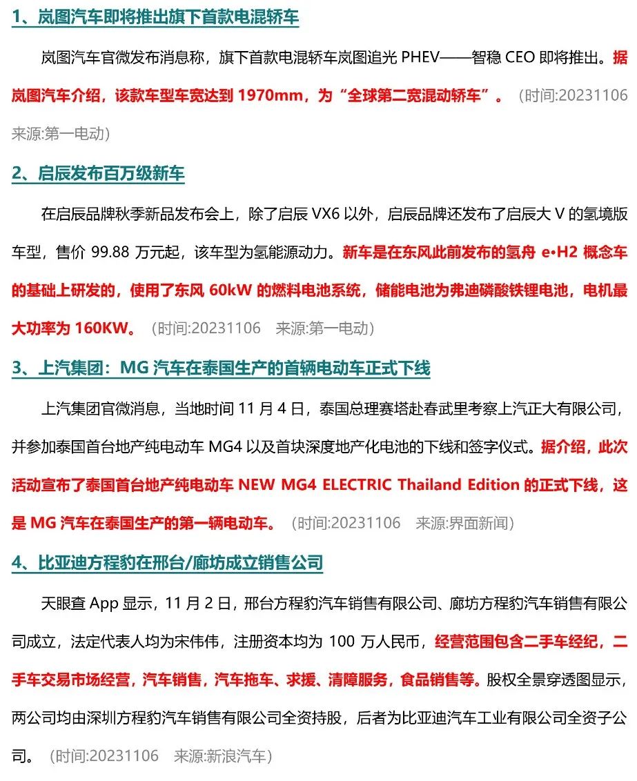 【新能源周报】乘联会新能源汽车行业信息周报(2023年10月30日-11月5日)