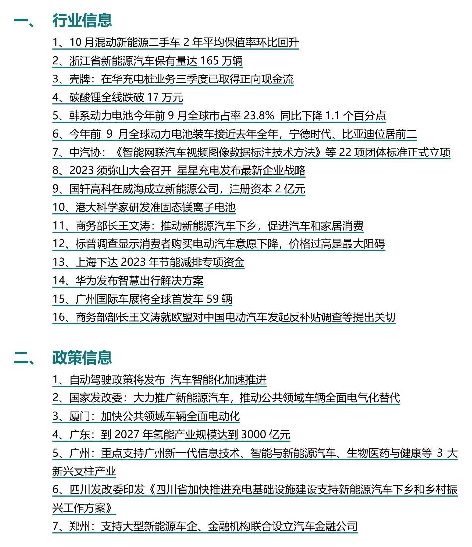 【新能源周报】乘联会新能源汽车行业信息周报(2023年10月16日-10月22日)