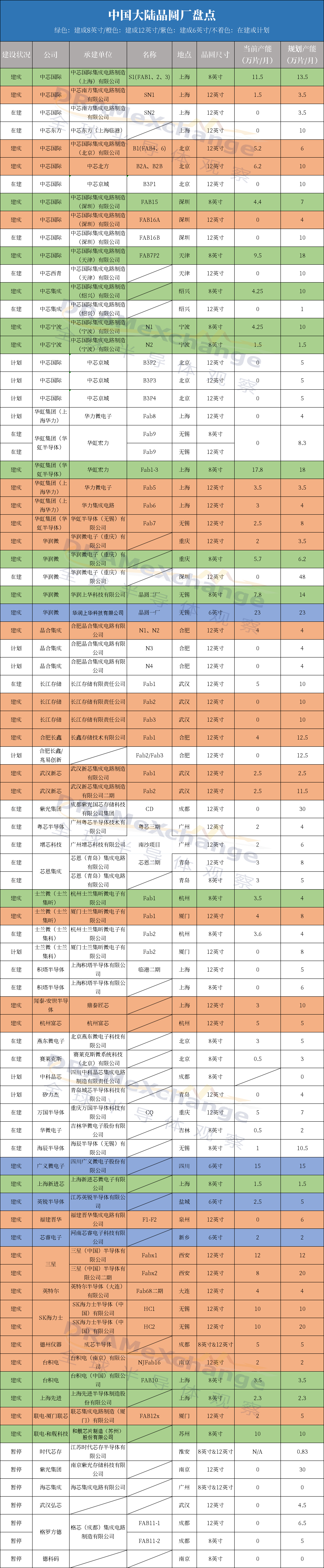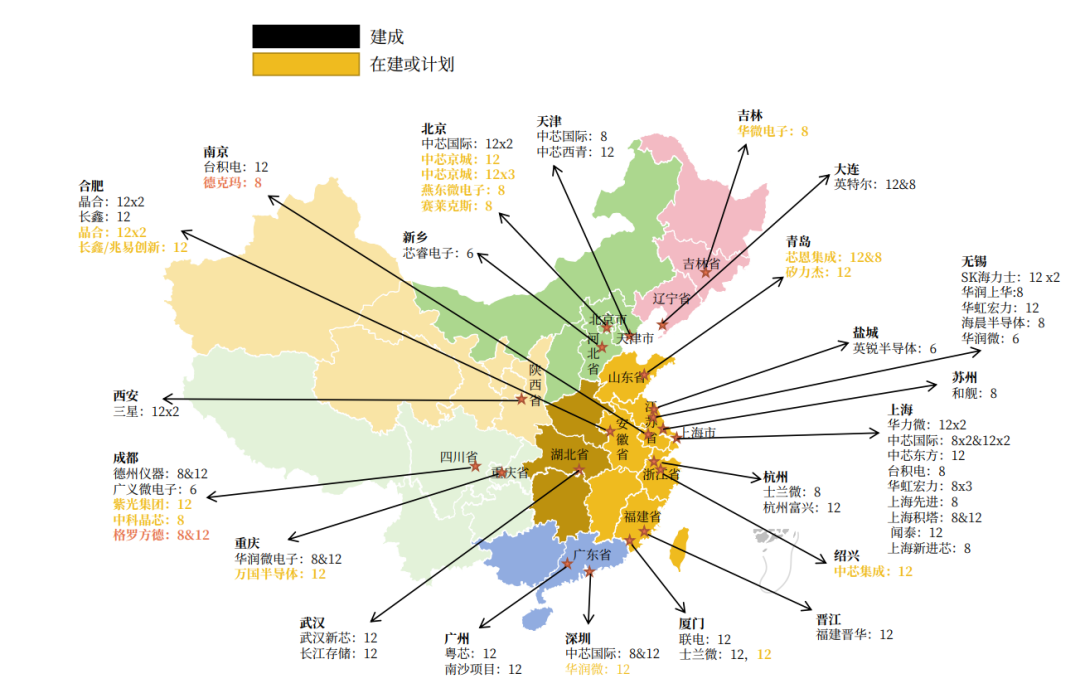 中国大陆各晶圆厂分布情况